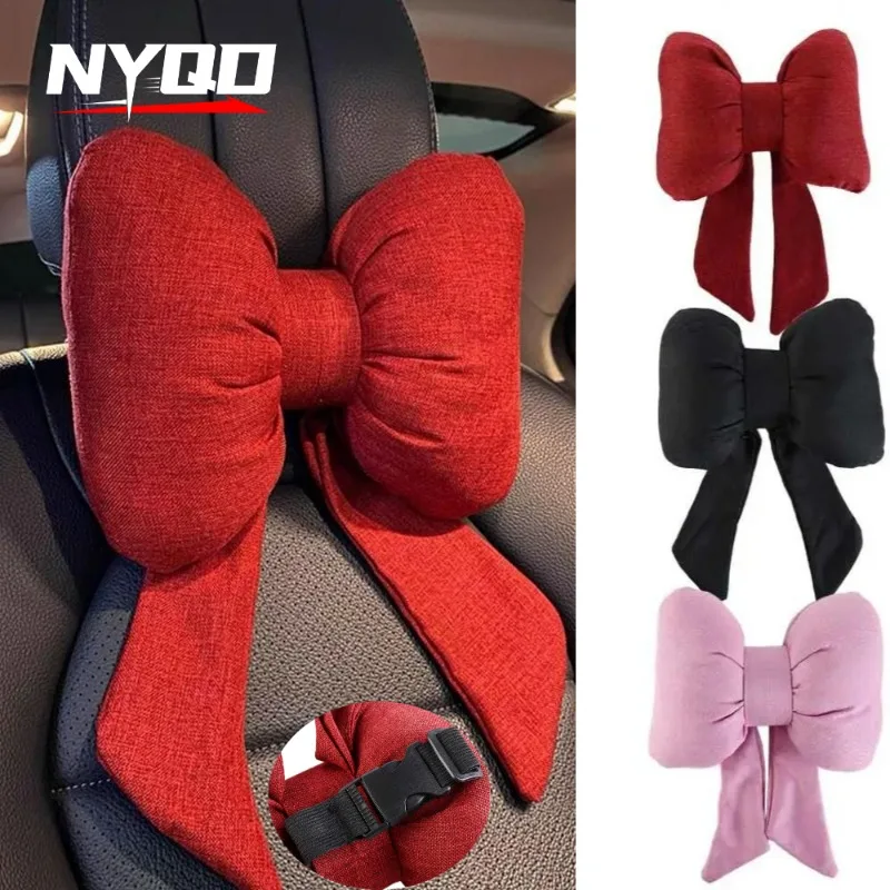 Comforelax Cute Ribbon Bow Car Neck Pillow Comfortable Neck Rest Cushion Simple Adjustable Auto Cotton Headrest
